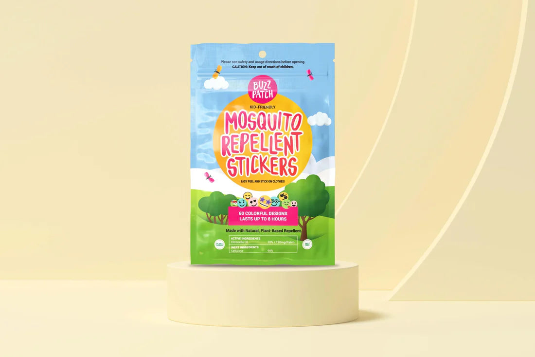 Simply peel off BuzzPatch sticker and place it on your clothing nearest to the exposed body areas. For kids aged 0-2 years, use 1 patch placed centrally on the body. For kids aged 3-5 years, place 2 patches on the body—one on the torso and one on the legs. For ages 6+, use 2-4 patches—one placed on clothing next to each exposed limb.