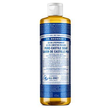 All oils and essential oils are certified organic to the National Organic Standards Program. Dr. Bronner's Peppermint Pure castile liquid soap is packaged in 100% post-consumer recycled plastic bottles.