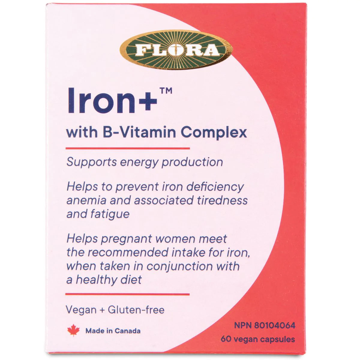 If you're tired all the time, you could be low in iron especially if you're pregnant. Your body needs iron to form the red blood cells that deliver oxygen throughout your body. Unfortunately, iron supplements are notoriously hard to absorb. Plus, they frequently cause constipation and irritation of the digestive tract. Flora Iron+ is different. Iron+ features a superior form of iron: ferrous gluconate. This iron is clinically proven to be better absorbed than other forms of the mineral. (For you technical types, that's because ferrous iron can be immediately absorbed by the gut mucosa of the small intestines, while ferric iron cannot.) With Iron+, you'll be soaring in no time.
