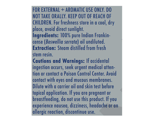 100% pure Indian Frankin- cense (Boswellia serrata) oil undiluted.