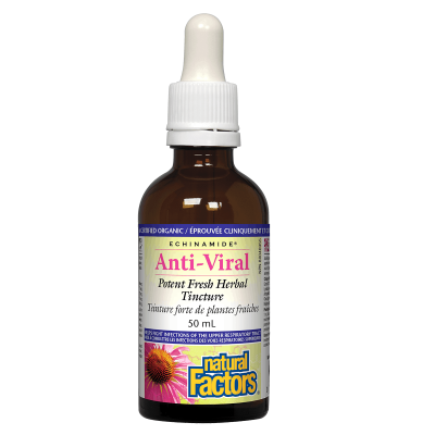 Natural Factors ECHINAMIDE Anti-Viral Potent Fresh Herbal Tincture harnesses the power of nature to help you fight viruses. A proprietary blend of clinically proven ECHINAMIDE with well-researched antiviral herbs, this formula helps relieve symptoms and shorten the duration of colds and flus.